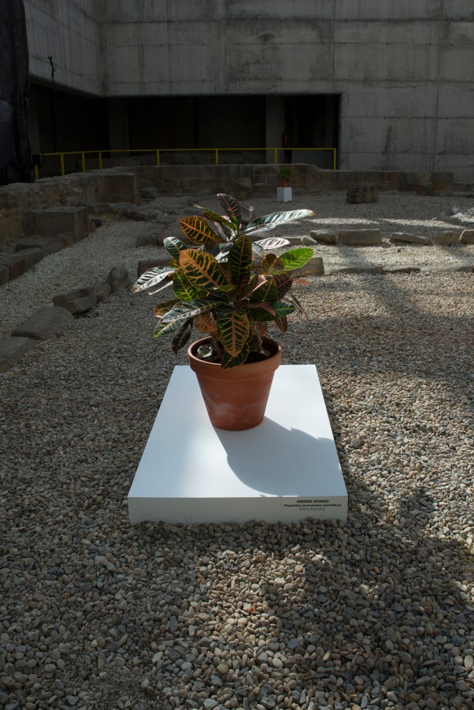 Es una instalación sonora inédita que plantea la naturaleza como SUJETO que cuenta y que canta a través de cuatro plantas, con las que vive la artista. A modo de analogía con la transformación de la materia en la fotosíntesis, cada especie expulsa un “concierto clorofílico” sobre una de las 4 emociones básicas del ser humano, de las que fueron testigos en la quietud del confinamiento, y que se escuchan mientras observamos la peculiar belleza de unas hojas.